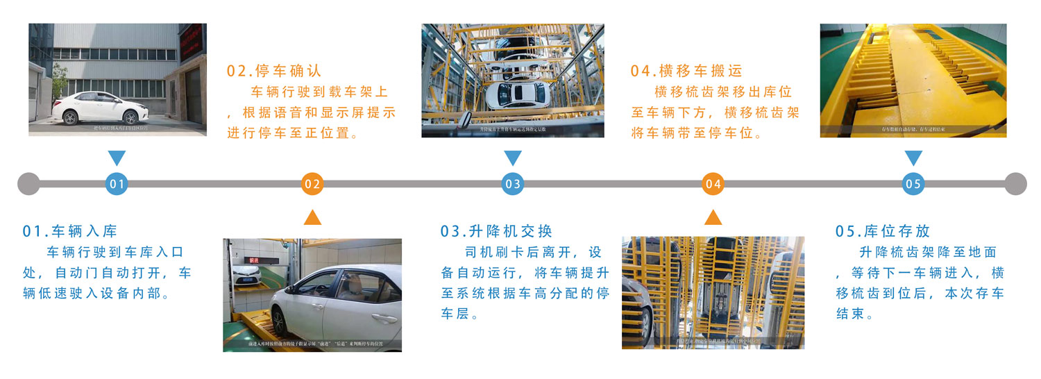垂直升降類機械式停車設備亦可稱之為“塔庫”,主要通過升降裝置的升降和裝在升降裝置上的智能搬運器將車輛搬運至固定車位上,從而實現車輛的存取。